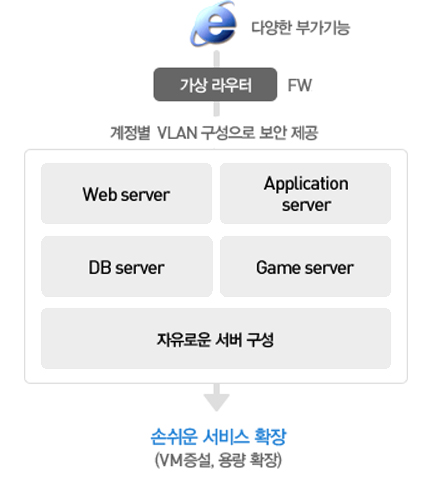 - 클라우드 서버 용량 및 트래픽 초과 등의 이벤트 요소 발생시 즉시 증설 가능
