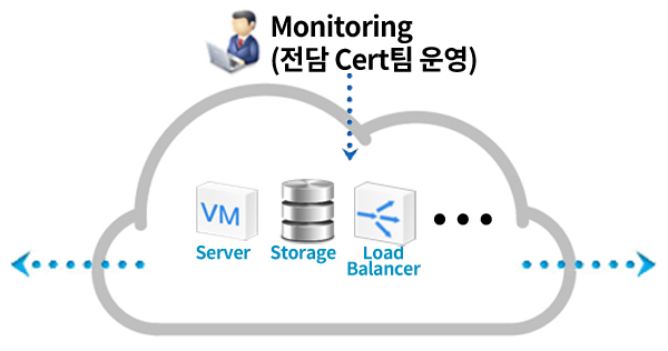 Cloud 운영관리 전담 인원을 통해 모니터링, 보안 및 장애처리까지의 전반적인 운영관제를 지원합니다.